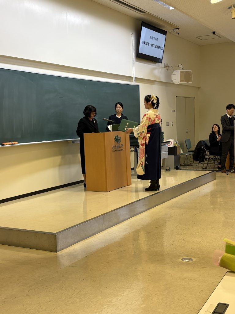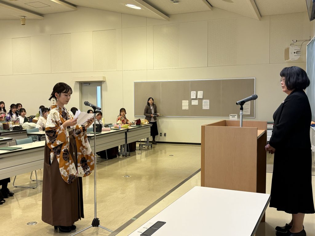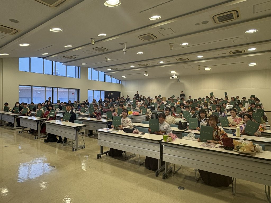 当日はあいにくの雨となりましたが、厳かな雰囲気の中にも温かさがあり、色とりどりの袴に身を包んだ卒業生・修了生の姿が会場を華やかに彩っていました。一人ひとりの新たな門出を感じる、心に残る式となりました。